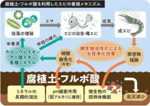 これらの活用によりエビの生育環境を改善し、エビの生存率を高めると共に、化学薬品を使用しない安全安心なエビのスピーディな養殖が可能となる。